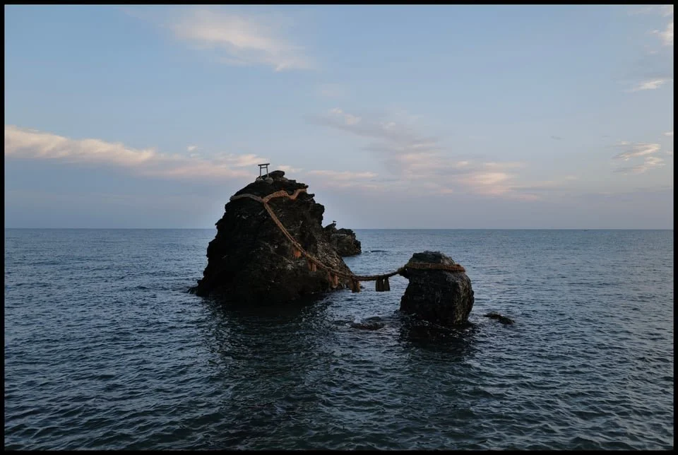 The day started with a pre-dawn cycle to see the Meoto Iwa at the Futami Okitama-jinja Shrine. Why cycle? Because at that time of day at this time of year, it’s either that or walk. No train, bus or taxi will get you there in time to see the sun rise.