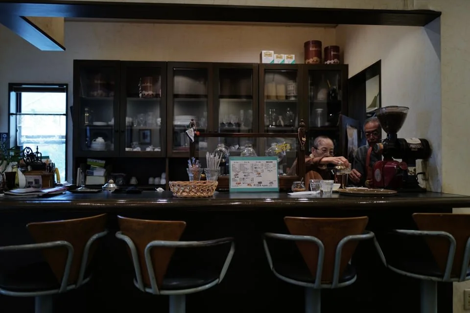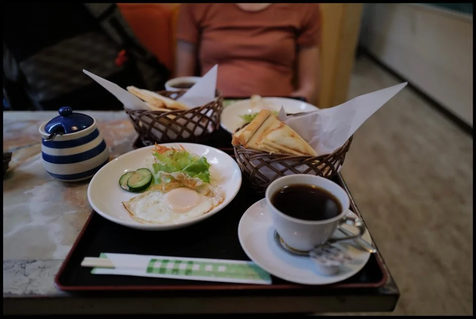 The old couple — she with shaved head, monk-like, he with a stature uncommon for a Japanese man and a wide-open smile — ran this place with an evident love. To watch the wife tend to the coffee siphons — topping up the kettle, stirring the grounds in the glass apparatus with a dark-stained paddle — while speaking gently with her husband — behind the swing door in the kitchen preparing the food — was just as reviving as what they served us. When he came out to put things on our table, he greeted all his customers like the old friends they clearly were.