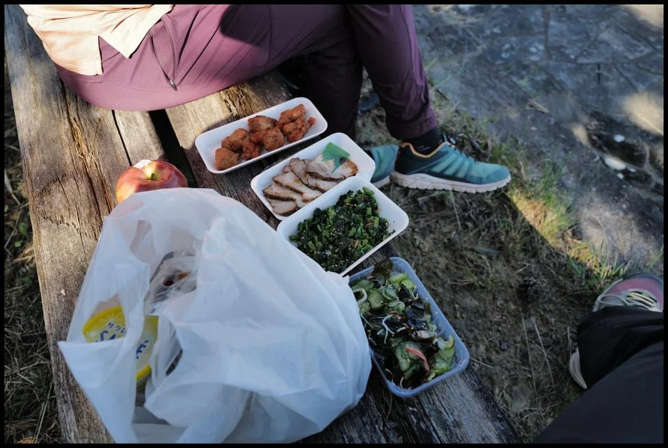 After securing provisions in Atashika — fried chicken, pork slices, an ornamentally-sized apple, ice creams and the last remaining trays of green vegetables: FIBRE! — we walked along the sea wall to find a spot to sit. From below, a tall Japanese man with long hair and browned-butter skin cried out to us in English: “Where are you from!?” “Australia!” I shout back. “I lived in Sydney! Manly Beach! I love surfing!”, smile beaming from his face as he speaks. Turns out he runs a small guesthouse and juice bar with his wife. She bakes sourdough. What I would give for sourdough… It’s the first sign of any kind of youthful resurgence we’ve seen on the whole walk and it’s my profound wish that he succeeds. I hope that more people discover this beautiful corner of his country.